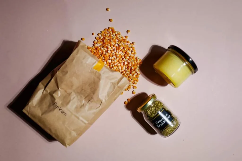 Sett en gryte på platen. Smelt ghee. Når gheen er varm heller du popcorn i gryten. Rist og sett på lokk. Når det begynner å poppe i gryten senker du temperaturen litt. Drist deg til å helle på salt og krydder før du legger på lokk igjen. Rist på gryten jevnlig. Nå poppingen opphører er popcornet ferdig.