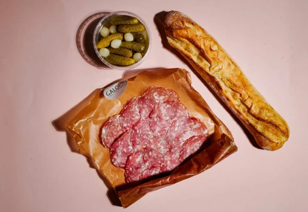 Fennikelsalamien fra Galopin er helt ubeskrivelig nydelig og du får den levert i tynne skiver som nettopp er skåret opp.