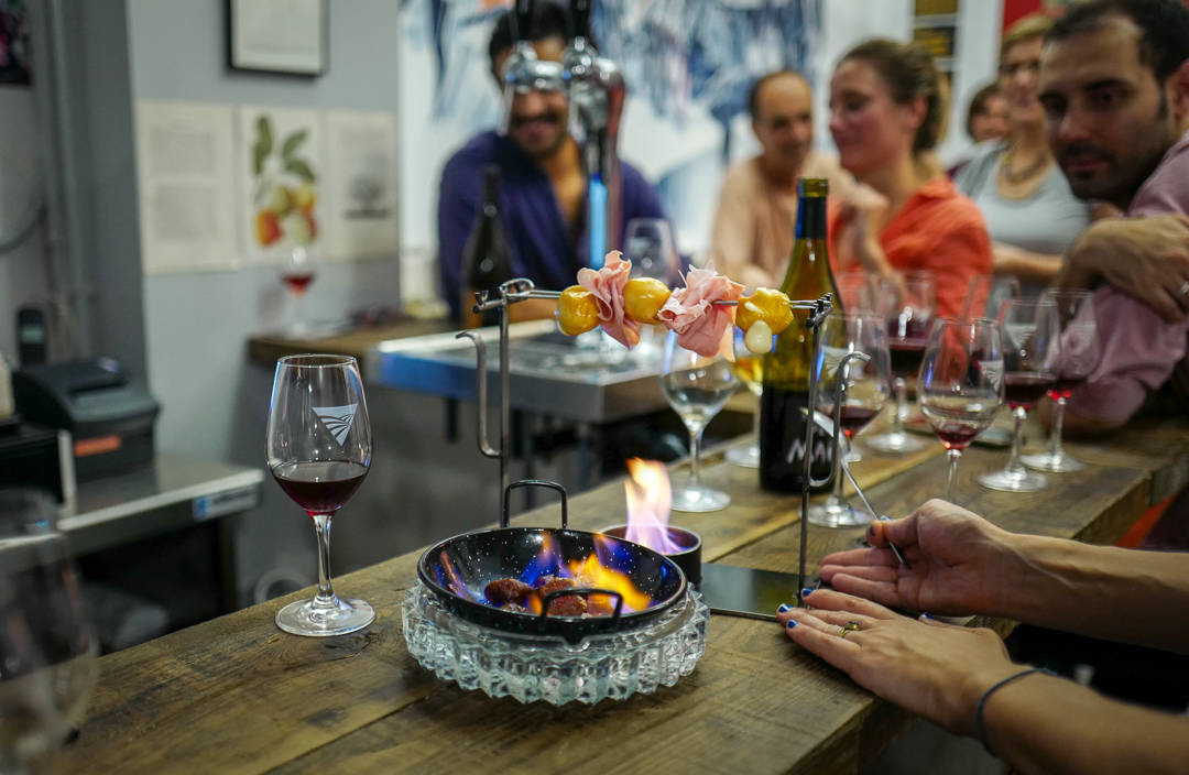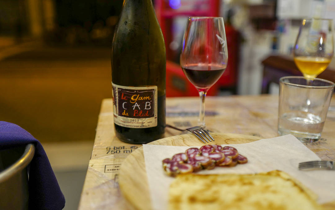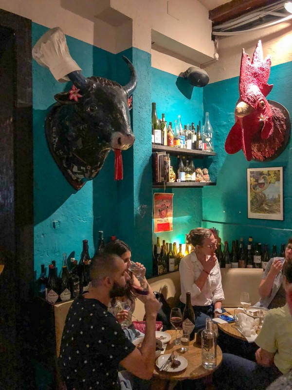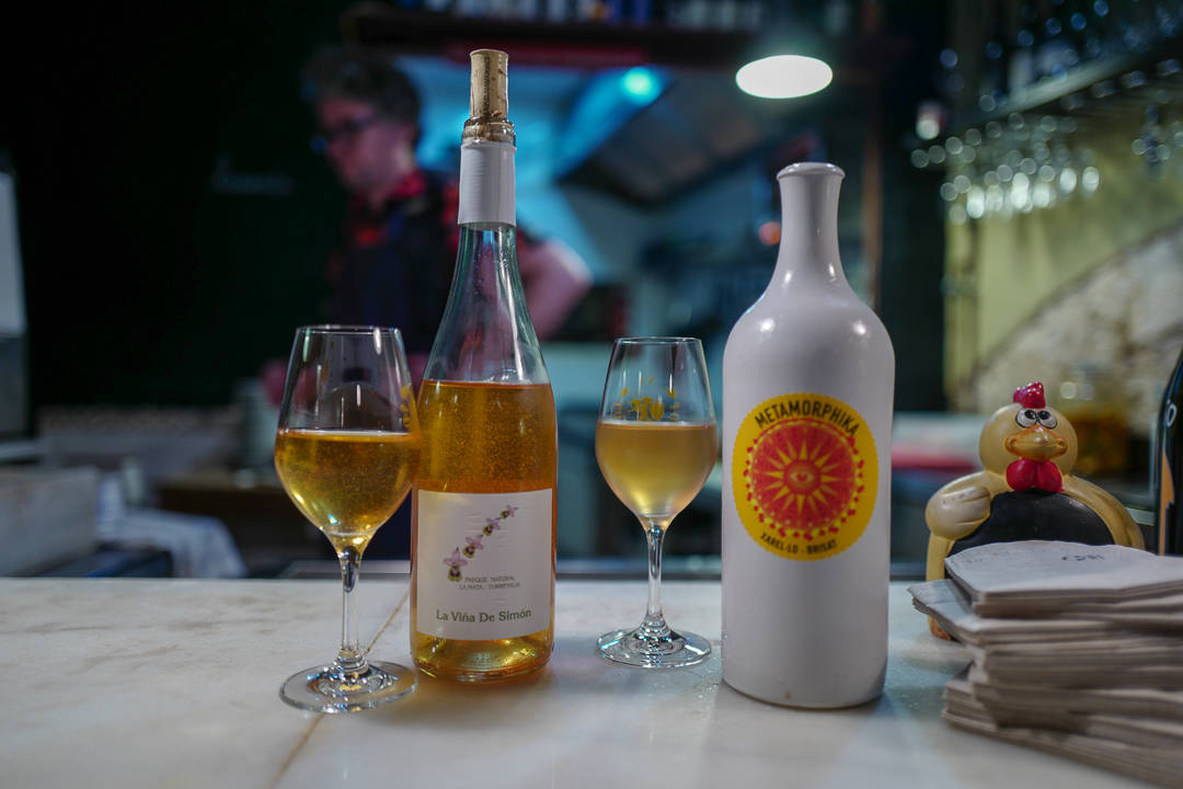 Jeg har et par favoritter fra før. Bar Brutal i Born er en av dem. Stedet, som har flere avdelinger og til tider veldig god mat har nok byens aller beste utvalg av naturviner. «Bibelen» deres er tykk som en god gammeldags telefonkatalog og vinkjelleren er stappfull av godbiter fra hele verden som kan være vanskelig å få tak i andre steder.