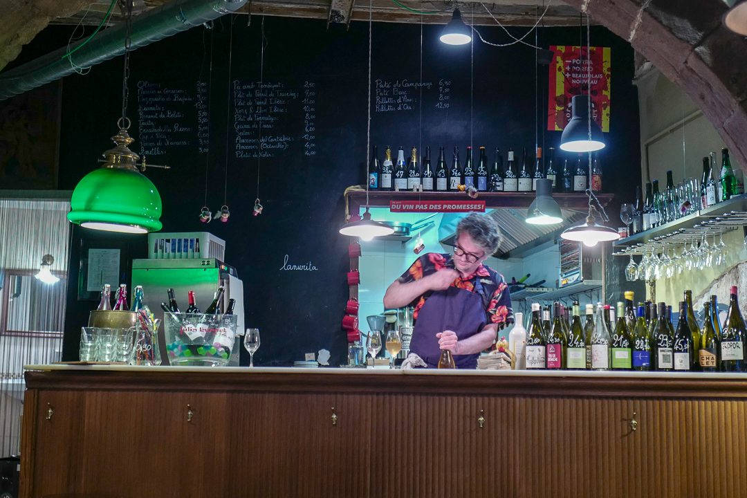 Dette er også et naturvinsted og det geniale her er at du kan få naturvin på tap. Jepp! De har en vegg av tappekraner med oransje, røde og hvite viner i alle prisklasser og stiler.