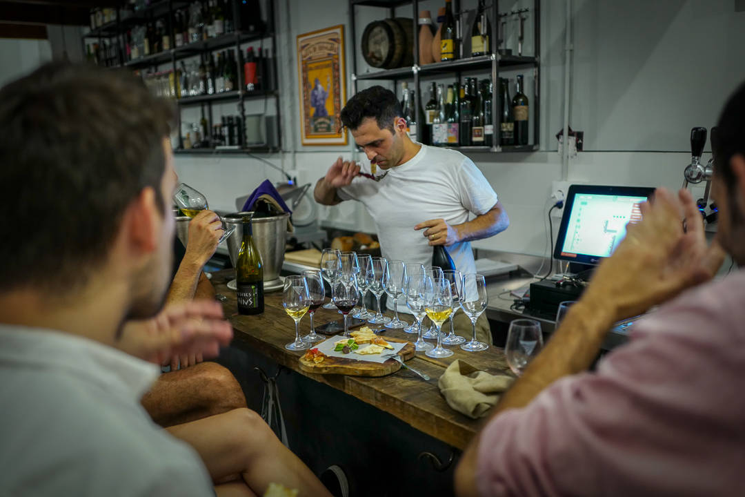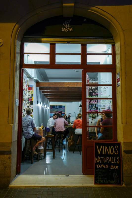 Garage Bar (Calabria 75) i trendy San Antoni er siste tilskudd på naturvinfronten i Barcelona. Stedet åpnet i mai og ligger i en gammel garasje. Italieneren Stefano Fraternali driver baren og vinimport.