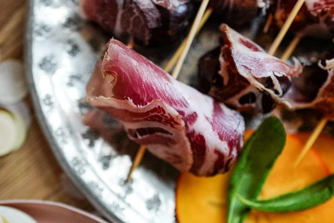 Det viktige å tenke på her er å skjære coppaskinken tynt, så har du en skinkeskjærer er det en stor fordel. Coppaskinken, Hockey, til Ask er så delikat og jeg velger å bruke den slik den er. Surret rundt deilige og myke dadler (fjern stenen i midten hvis det er sten i dadlene du velge) og satt på et dekorativ spyd eller cocktailpinner er dette den perfekte fingermat-retten.