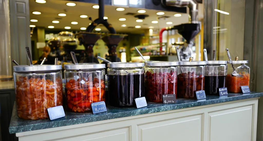 Mokka er et ekte kaffested som åpnet i 1922. Vel, da het det Bravo. I 1999 skiftet kaffespesialisten navn til Mokka. Selve kaffebutikken er helt fantastisk. Utvalget er stort av kaffebønner og kaffeutstyr. Jeg kjøper selvsagt med både bønner og en klassisk gresk kaffekanne og visp i messing.