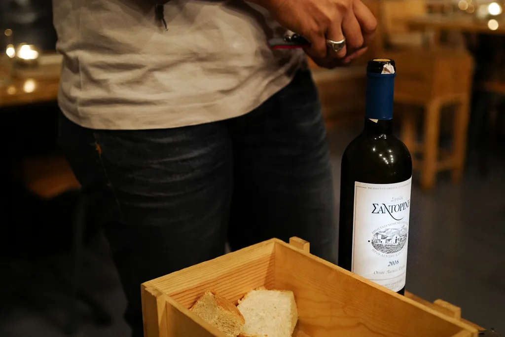De har også egen vin som er eksklusivt laget for restauranten i samarbeid med Yiannis Girlemis vineyards. Det finnes skikkelig god, gresk vin. Trust me.