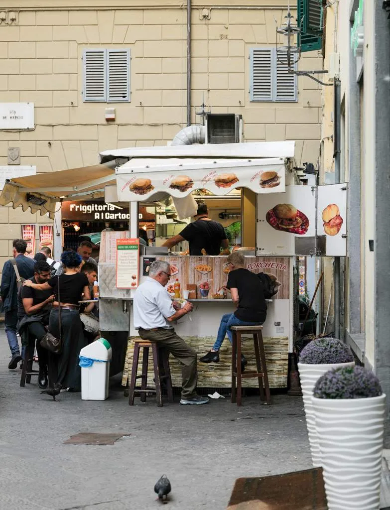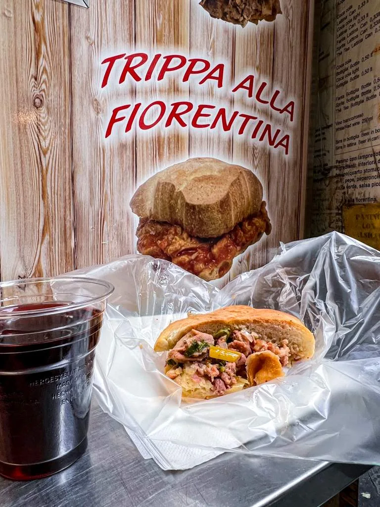 Noe ikke fullt så posh, men en av byens tradisjonelle steder for å prøve retten Lampredotto. Den er laget av kuas magesekk som kokes i lang tid. Det høres kanskje ille ut, men det smaker forbausende godt. Den serveres i sandwich med en grønn urtesaus samt chiliolje. Du finner mange vogner i Firenze som serverer den lokale spesialiteten. Jeg kan anbefale L’Antico Trippaio som ligger på Piazza de Cimatori. Nydelig mat, hyggelig service og brukbar bordvin i den lille vogna deres. En opplevelse.