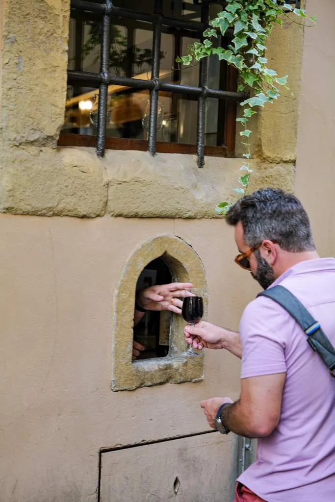 Buchette del vino. Vin rett ut fra veggen er en ting! Under pandemien ble de gamle lukene som før ble brukt til å selge vinflasker til lokalbefolkningen tatt i bruk. Litt med samme hensikt: Å unngå smitte. Før i tiden (1630-1633) var det også en måte å selge vin på uten å åpne butikk, og dermed slippe å betale skatt. Vinvinduene finnes det mange av, men mange er ikke i bruk, da de tilhører private huseiere. (Det er i alt 180 av dem, faktisk). Men noen er i bruk. Du banker på luken, forteller hva du vil ha, og vipps kommer en hånd ut av luken med det du har bestilt. Kult, ikke sant? De fleste vinvinduene finner du i området Santo Spirito. Men for å hjelpe deg litt på veien, kan jeg røpe navnene til noen serveringssteder som praktiserer vin-ut-av-veggen-servering: Babae, Belle Donne, DiVin Boccone, Il Latini (der jeg var), Vivoli (der ville jeg heller ha bestilt deres velkjente affogato servert i kopp), Cantina dei Pucci osv.
