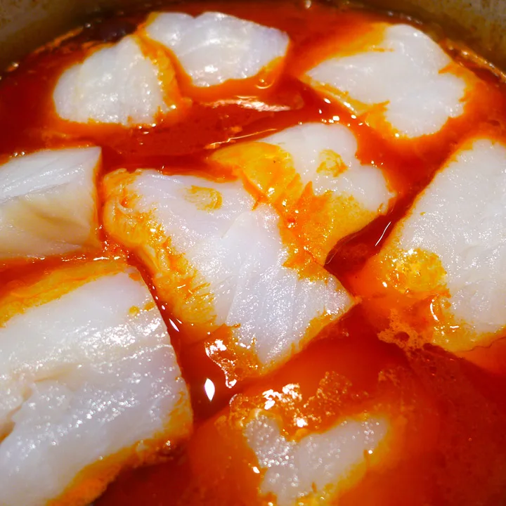 Det er småkaldt i været og man kjenner at man vil ha varmende mat. Bacalao er sånn mat. Men ekte bacalao krever planlegging. Klippfisken må vannes ut i dagesvis for at den skal være spiselig. Jeg klarer ikke planlegge så mange dager frem i tid. Har jeg lyst på bacalao i dag, ja da lager jeg en «nesten-bacalao». Det gjorde jeg her. Men for ordens skyld kan man jo kalle den for fiskegryte.