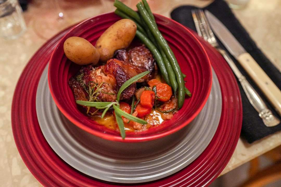Gryta lagde jeg dagen før jeg skulle reise til Hawaii. Jeg hadde litt i kjøleskapet jeg skulle bruke opp, og da ble det deilig gryte. Foruten bibringe hadde jeg deilige grønnsaker og rørosrømme. En slant rødvin og urter og vips var det mat.