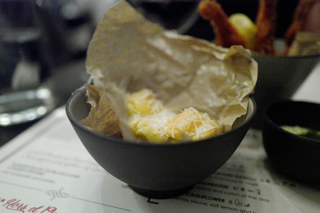 På menyen til Brasserie Ouest finner du også gratinert blomkål. Denne varianten serveres med sauce mornay (bechamelsaus med Gruyère), hasselnøtter og sitron. Jeg tipper denne har havnet på menyen for å utfordre nabo’n. Jeg skal i alle fall smake denne versjonen ved neste besøk.