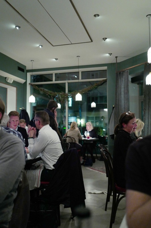 Akustikken er ganske høy, men man blir vant til det etter en stund. Lokalet er enkelt dekorert og belysningen er dunkel. Et mareritt for en matblogger, men veldig koselig for gjestene, og det teller jo tross alt mest.