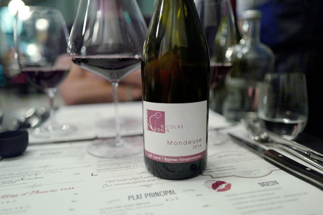 Til hovedretten får vi servert et glass Nicolas Gonin Mondeuse til. Vinen er bløt og deilig, men passer ikke til den robuste kjøttretten. Den går allikevel ned på høykant, så det var ikke bortkastede penger, altså. I tilfelle noen ble litt bekymret.