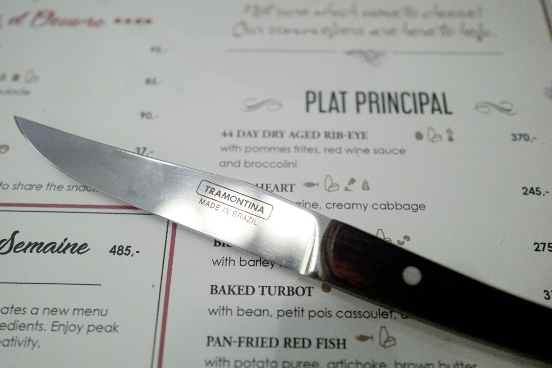 Når vi endelig setter oss til bords får vi ikke tilbud om aperitif, noe vi hadde takket ja til hvis noen hadde giddet å spørre. Restauranten var stappfull, men det er ingen unnskyldning for ikke å ta seg av ankommende gjester.