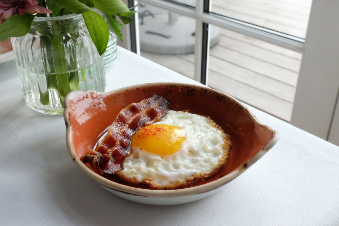 Det jeg likte spesielt godt med frokosten på dette hotellet var de små, søte pannene med speilegg og sprøtt bacon. Hvor får man tak i slike fine panner? Jeg vil ha! Stella Maris er et badehotell med sjarm og stil. Det er lyst innredet og man føler virkelig at skuldrene faller ned de de skal være.