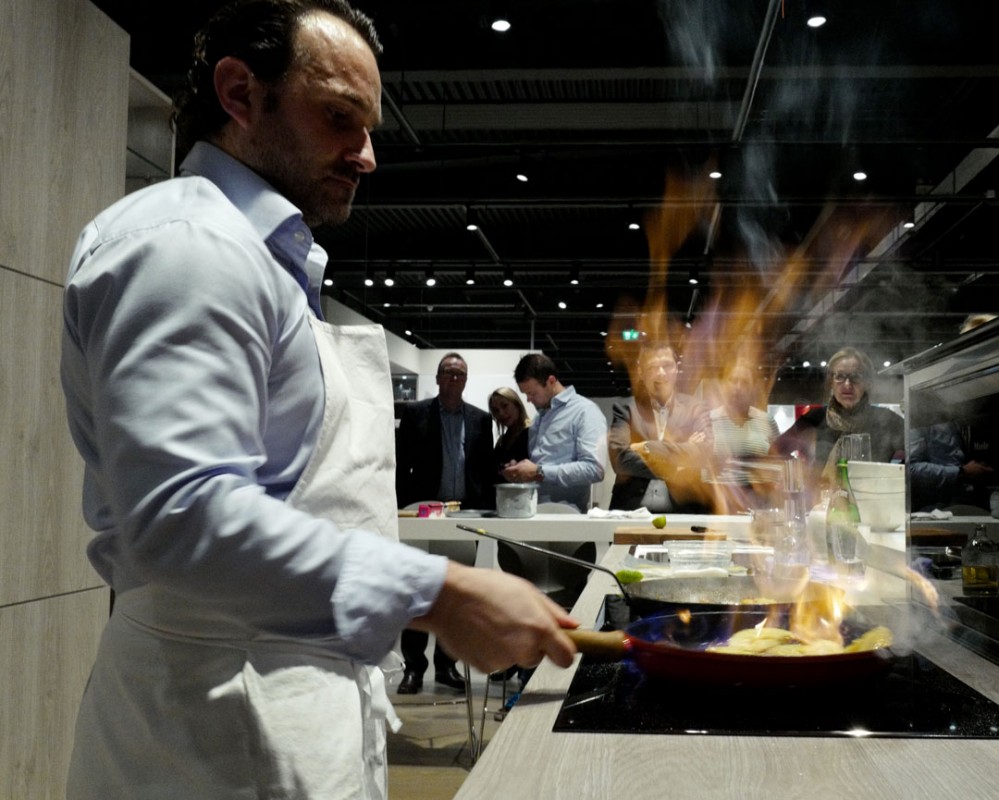 I går var jeg på et flott arrangement i regi av den franske kjøkkenprodusenten Mobalpa. Jeg pusser opp kjøkken om dagen og er så ubeskrivelig lei av takeaway-mat og knekkebrød. Derfor er det ekstra hyggelig å bli invitert på middag og det inne i en kjøkkenbutikk. Dette var ikke en hvilken som helst middag heller. Selveste ex-kjøkkensjefen på legendariske Bagatelle og streng Masterchef-dommer Gregory Paul sto bak grytene. Dessuten hadde partyfikser Ronnie Ottem stått for dekor og opplegg.