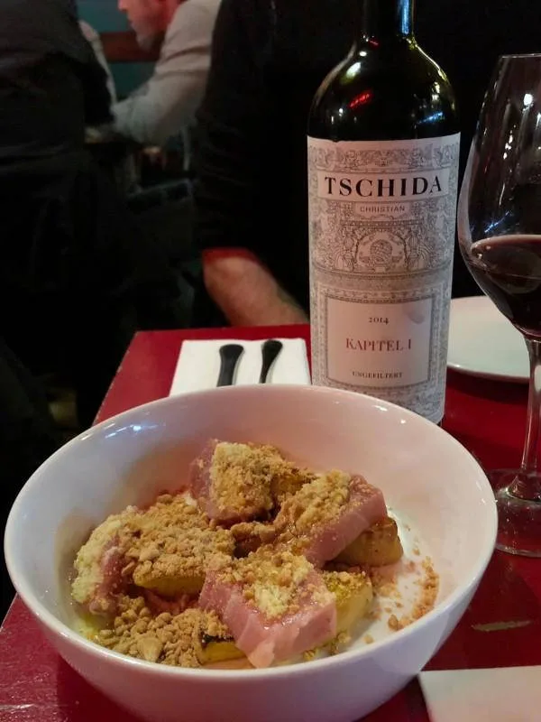 Med vann og en deilig flaske naturvin kommer regningen på 50 euro.