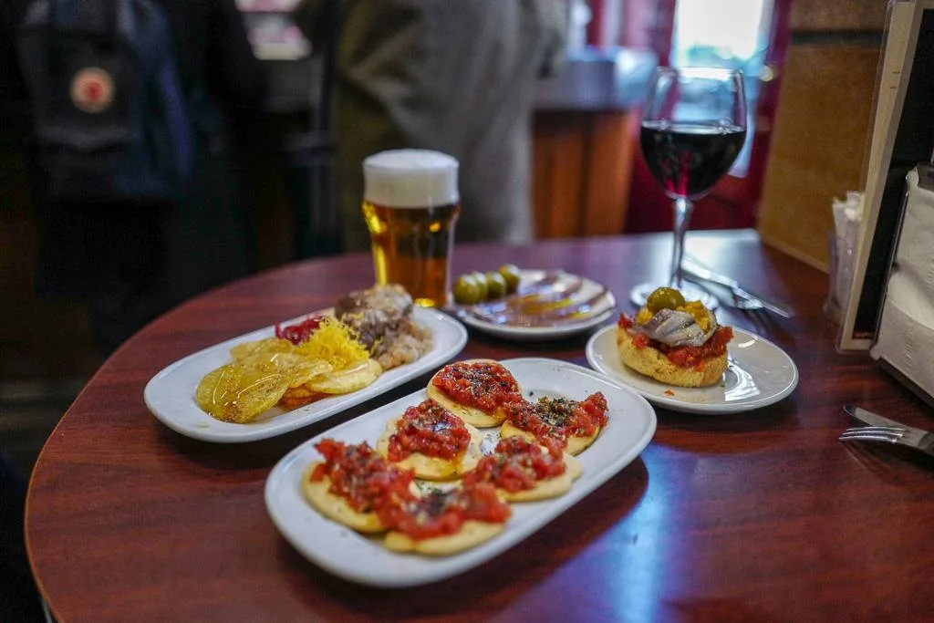 De smaker så godt til salte ansjoser. De har også spesialiteter som små brødblingser med pålegg på. Det kan være laks, sardiner, kråkeboller, ost…