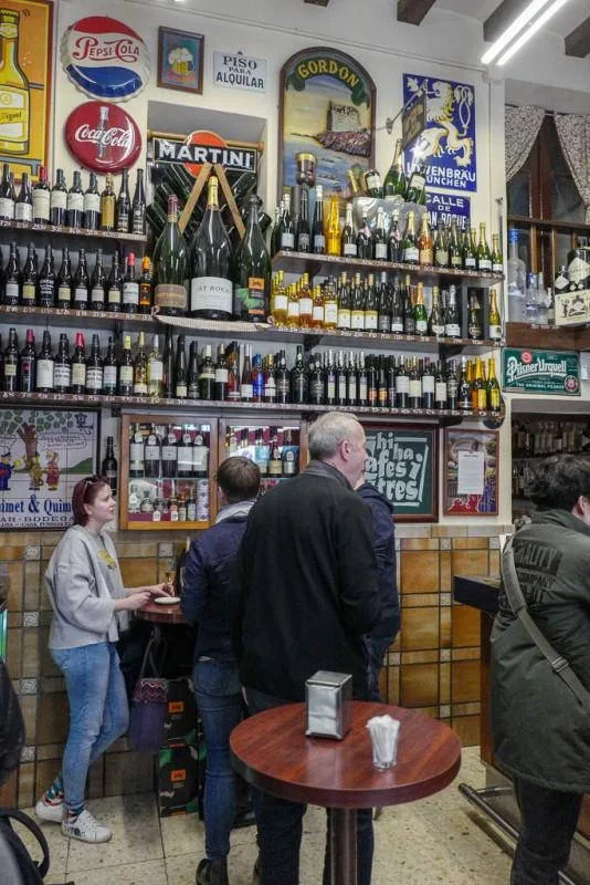 Quimet & Quimet er en vinbar/tapasbar. Det er flasker opp etter alle veggene og tapasen de serverer er ikke helt klassisk. Deres tolkning av Pan con tomate er ikke slik den vanligvis serveres. På Quimet & Quimet får du små kjeks med søt tomatsalsa, olivenolje og tørket, sort olivenpulver på toppen. Nydelige.