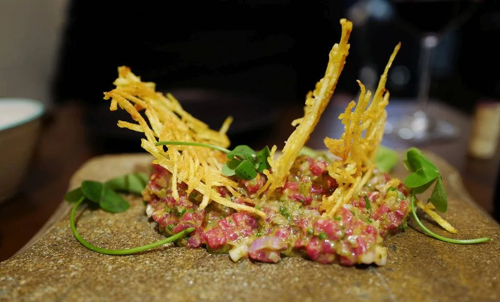 Vi går for diverse retter og har virkelig problemer med å velge bort noe fra den spennende menyen. Vi ender opp med Steak tartar til å begynne med. Den er sterk og herlig. Masse smak og okskjøttet er håndhakket. Den serveres med taffelsticks. Perfekt.