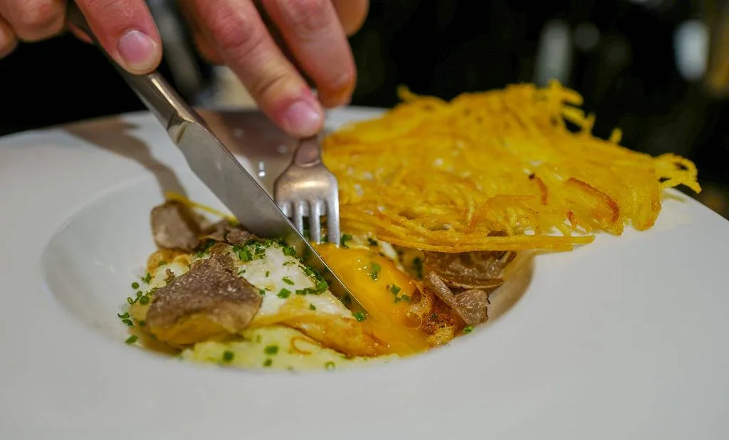 Plata Bistro er også en nyhet. Konseptet er som følger: Menyen settes hver dag. Det kokken finner på markedet havner på menyen. De åpner til frokost og har lunsj og middag. På en tavle over kjøkkenet står rettene og det er det du kan får den dagen. Vi var heldige og tok turen innom da de nettopp hadde fått inn litt trøffel. Og jeg elsker trøffel, må vite.