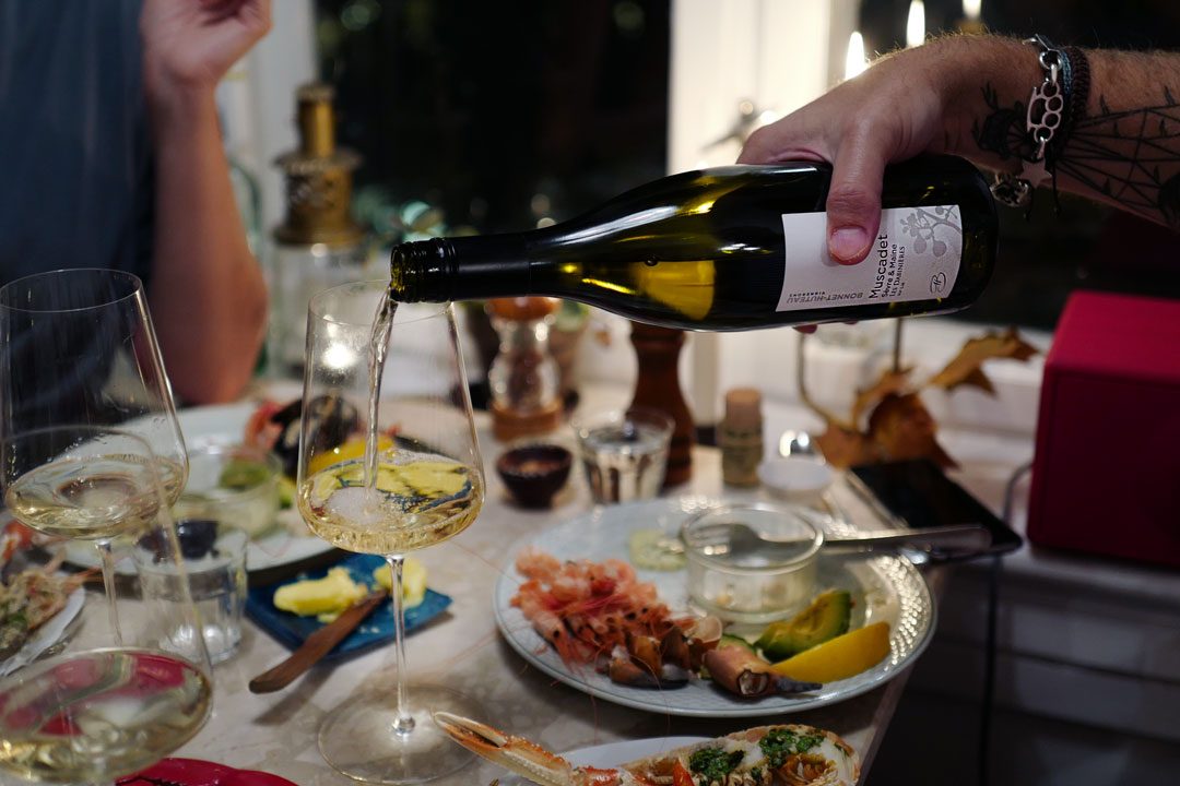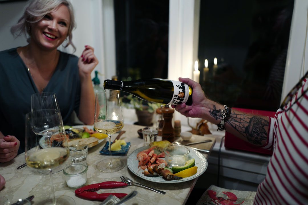 Jeg samlet Erik og to venner til skalldyrlag og satte 20 flasker vin på bordet. Hver og en av flaskene ble testet opp mot skalldyr som reker, krabbe, gratinert sjøkreps og kremet blåskjellgryte.