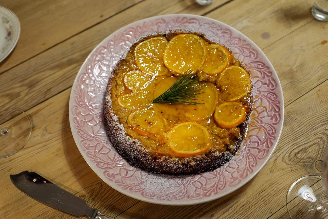Denne kaken er INTENS! Den består egentlig av veldig få ingredienser: Mandler, egg, sukker, krydder og appelsiner. Appelsinene kokes i et par timer og hakkes. Smaken som kommer frem etter kokingen er smaken av ekte appelsinmarmelade: Søtt, bittert og med en deilig klisset konsistens.