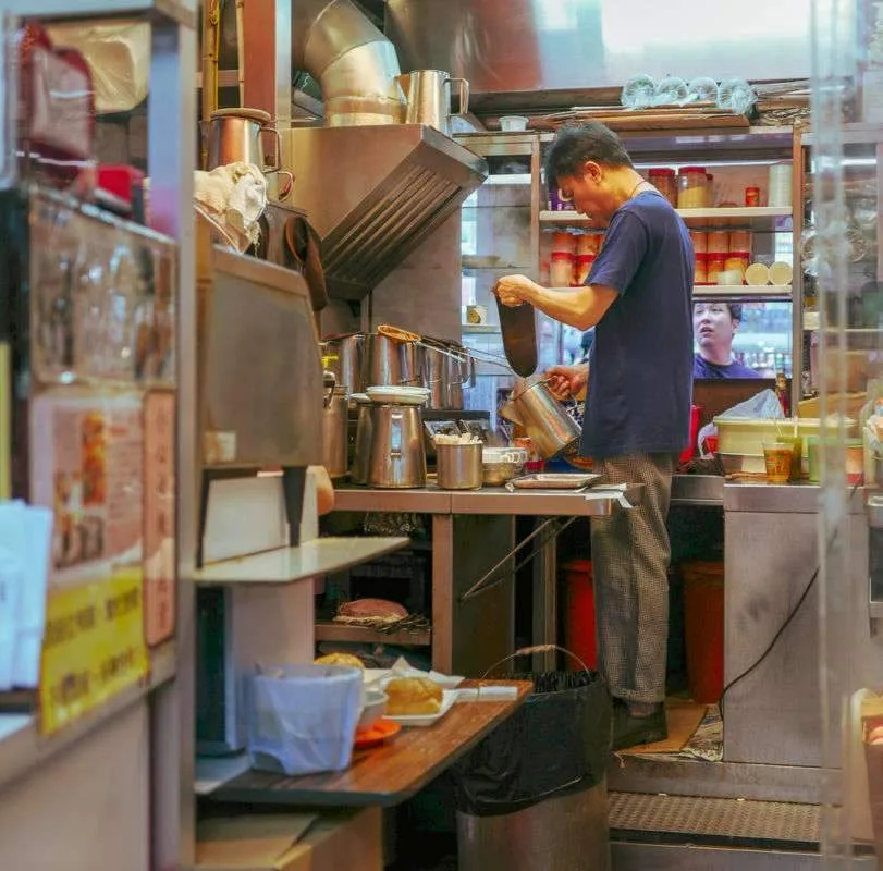 Utenfor Sing Heung Yuen står folk i kø. Dette er en av de få gjenlevende «dai pai dong» (spisesteder rett på gata) i byen. Mest unge mennesker, men alle er lokale. Dette er et sted som serverer nudler i kjøttkraft.