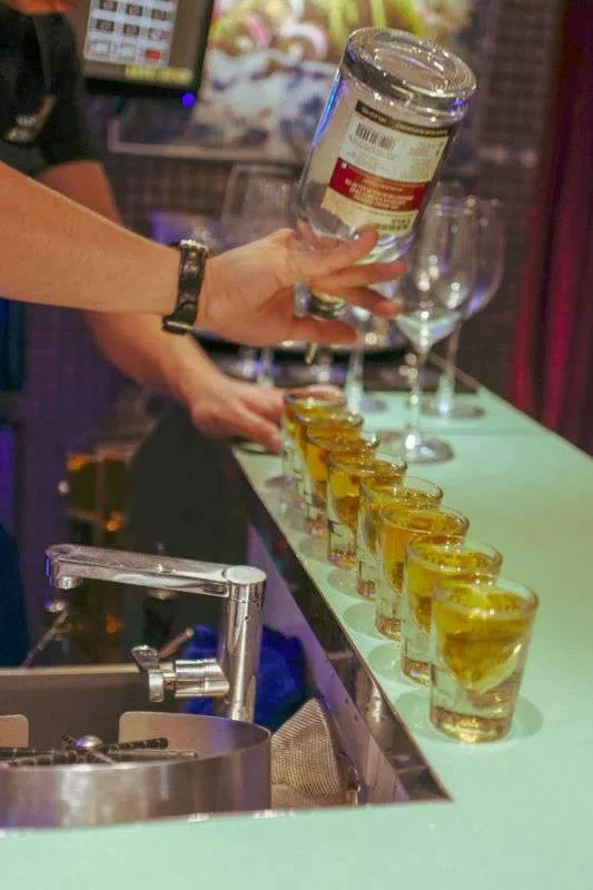 Plutselig får vi shots og kjøkkensjef Ng Samwich og gutta i baren skåler med oss. Hva skjedde nå egentlig? Og så får vi dessert på huset. En fantastisk eplekake med korianderkrem og epleaske.