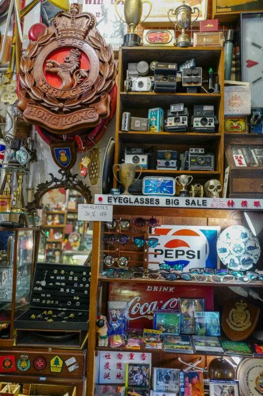 Lok Ku Street (ned fra Hollywood Road) har flere antikk-butikker og her kan man virkelig finne skatter. Gamle kinesiske plakater, krimskram og kjøkkenutstyr.