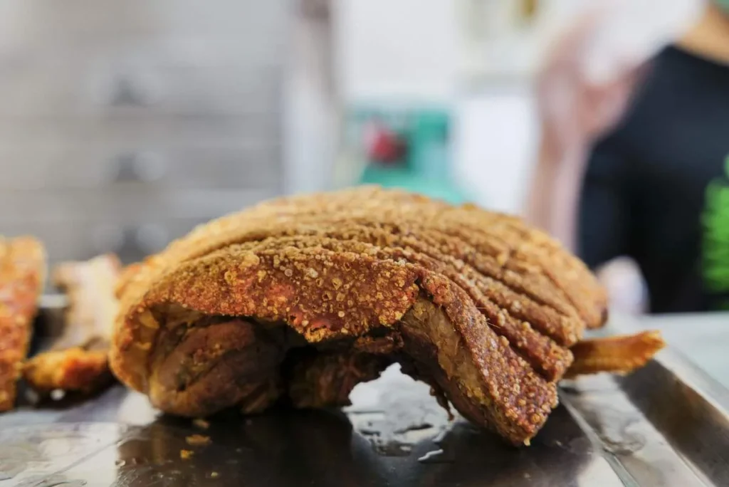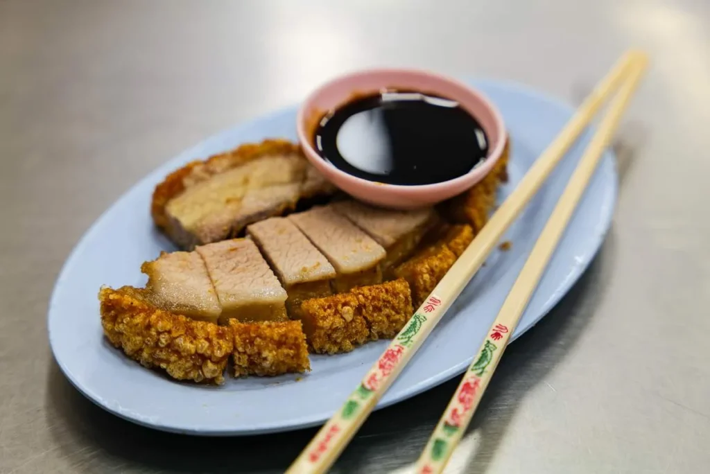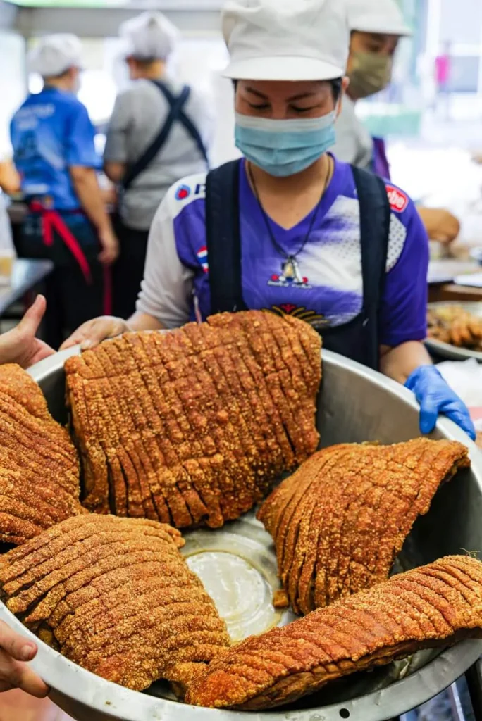 Som alltid når jeg reiser et nytt sted (ja, for Bangkok var en ny opplevelse for meg), har jeg gjort en del research. Jeg visste derfor om et sted ikke superlangt fra hotellet som spesialiserer seg på sprøstekt ribbe. Og ribbe til frokost, det vil man ha!