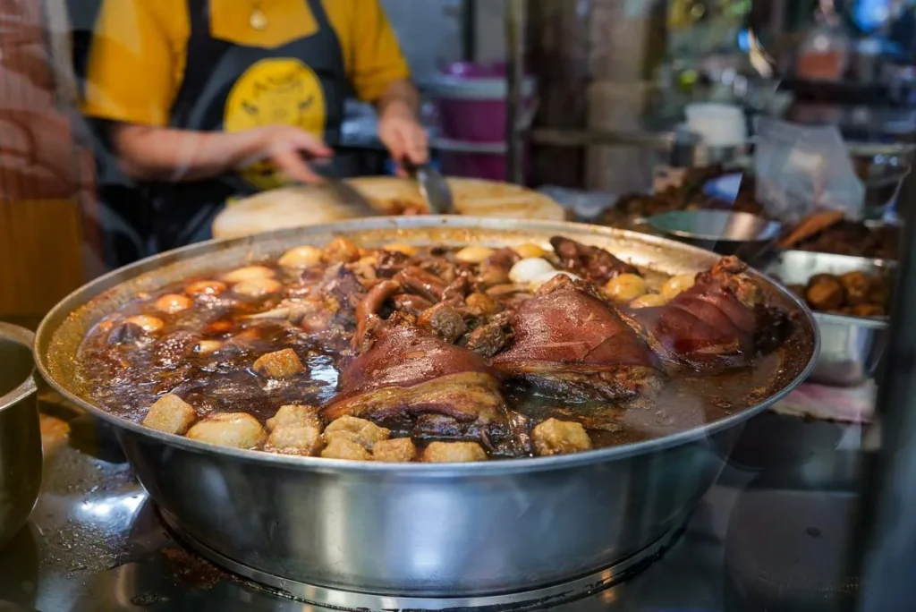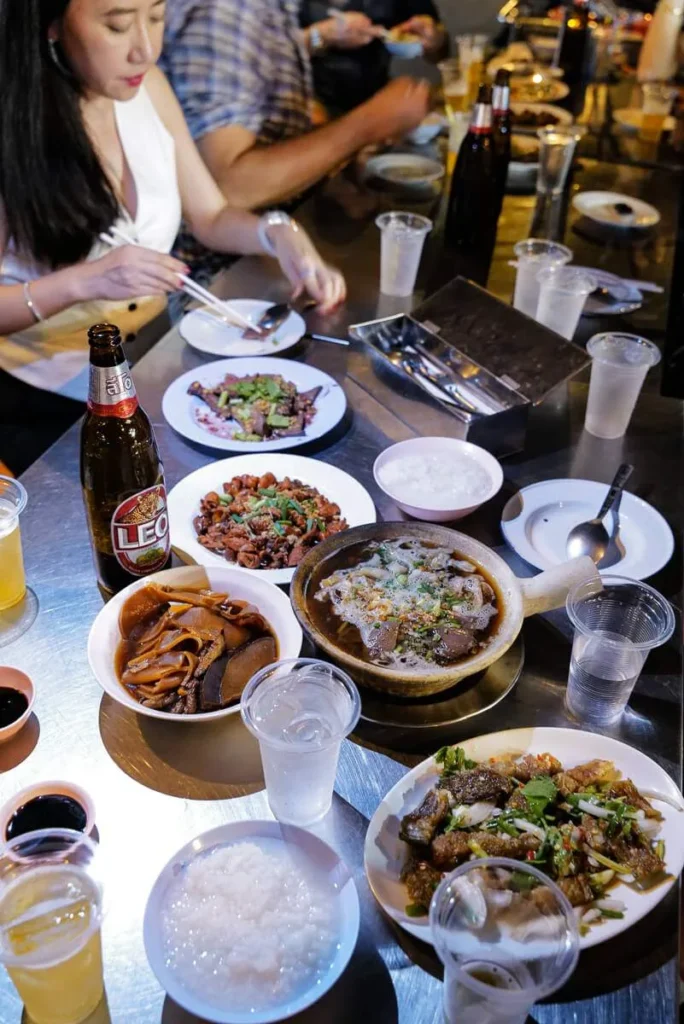 Chef Ton tar oss med til nok et sted. Eller det vil si to steder i et veikryss. Jeg aner ikke hva stedene heter og jeg hadde aldri satt meg ned der uten lokal hjelp. På thai heter stedene เพิ่มพูนจิ้มจุ่ม og ข้าวต้มแปลงนาม วงเวียน 22. De ligger i krysset 597/1 Maitri Chit Rd, Pom Prap, Pom Prap Sattru Phai, Bangkok 10100. Begge stedene er kjent for innmat. Det spises masse innmat i Bangkok. Ingenting kastes og du vil garantert få med noe innmat når du bestiller suppe eller en annen rett. Det har man ikke vondt av. Vi fikk servert et bord fylt av retter. Alt fra lever, lunger, kyllingføtter, svinelabber, tunger osv. Jeg er ikke så eventyrlysten i den seksjonen, men jeg smakte på noe der i blant kyllingføtter som jeg har smakt tidligere i Macao og som jeg liker godt. Bra med collagen. Får så fin hud av det, sier influencerne.