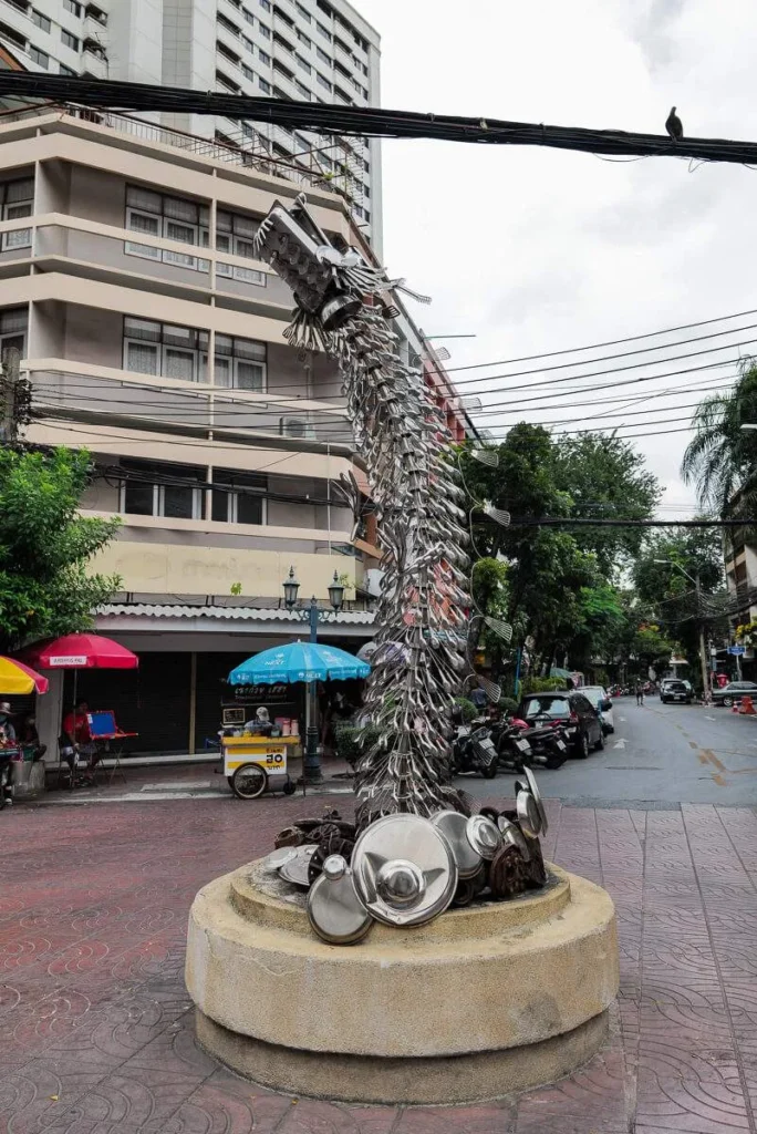 Vel inne i Chinatown, som starter rett over kanalen, skjærer jeg inn til venstre. Etter å ha passert den lille plassen med det fantastiske kunstverket som skal ligne en drage laget av kjøkkenutstyr går jeg til høyre. Der ligger en liten perle.