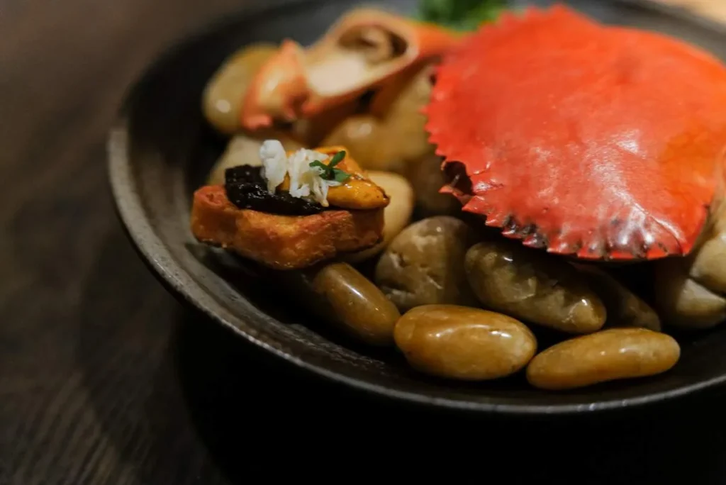 reincarnated | blue crab / mud crab roe emulsion / black pepper jam / crab butter bread