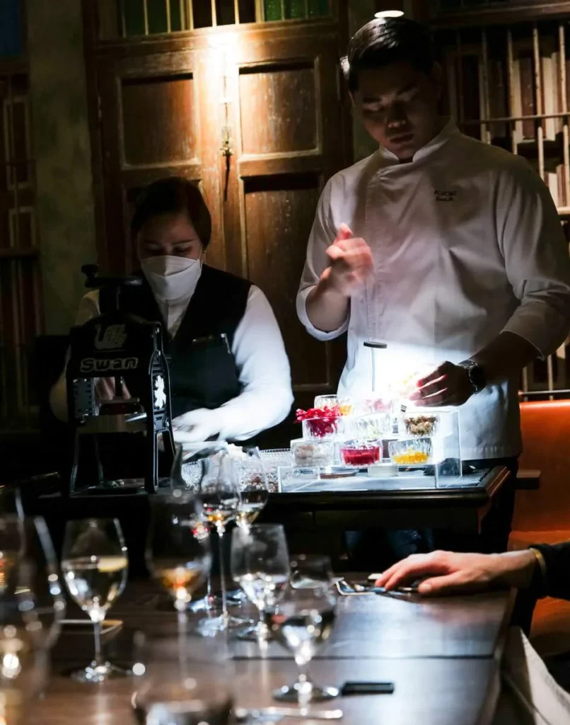 Han la ned sin tidligere restaurant i Bangkok under pandemien. Nå har han åpnet Restaurant Gaggan Anand (Adresse: 68 Sukhumvit 31, Khlong Tan Nuea, Watthana, Bangkok 10110). Det er noe av det mest spesielle jeg har vært med på av fine dining. Dette slår det aller meste. Var det et måltid? En forestilling? Konsert? Karaoke? Det er en salig blanding av alt og jeg digger det.