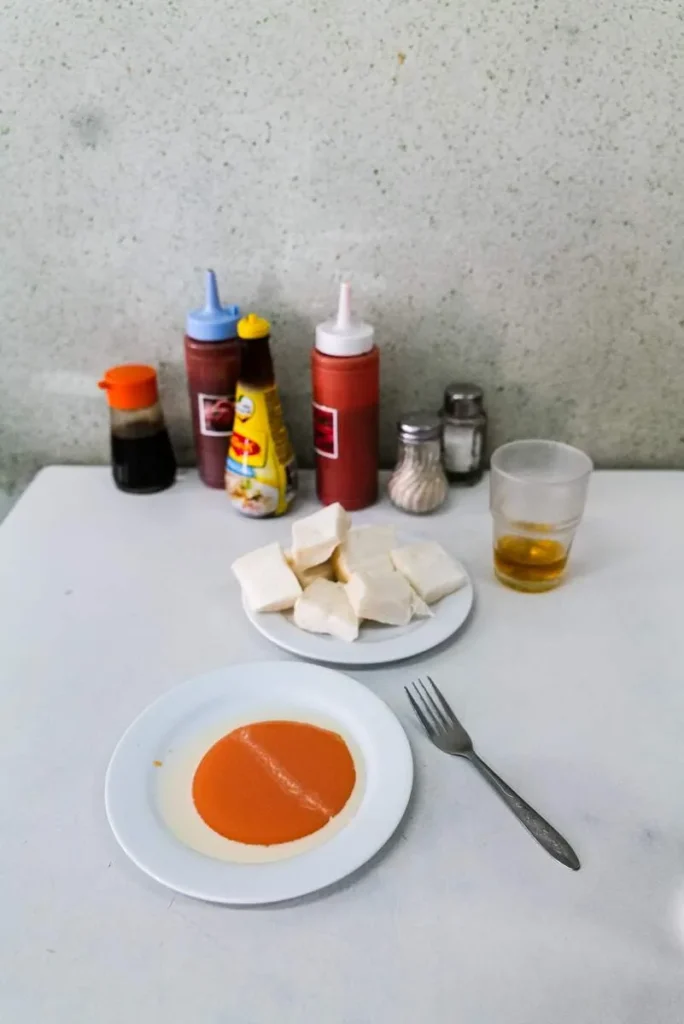 Jeg spiste frokost på et veldig lokalt sted på markedet. Jeg føler meg ganske trygg når jeg bestiller noe som er kokt og der jeg ser at det er masse lokale folk. Denne morgenen ble det kyllingsuppe og veldig søt kaffe.