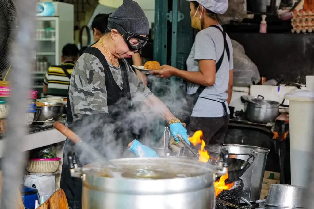 Det finnes mang en god restaurant i Bangkok. Det skal være sikkert og visst. En av de mest kjente kvinnelige kokkene i hele Bangkok er Jay Fai – damen med de store skibrillene. Kjent fra mangt et tv-program og en serverdighet i byen. Å få bord her foregår på denne måten: Man stiller seg i kø klokken 07:00 om morgenen og skriver seg på liste, sitter i kø og så, etter kanskje etter 3-6 timer, så har man bord. Hvorfor tar det så lang tid? Jay Fai lager absolutt all maten selv. Hun er hands on på absolutt alt. Hun er 77 år og jobber 12-timers dager. Hun er et råskinn! Hun står over en glovarm wok hele dagen med beskyttelsesbriller og en tøyfille som hun bruker når hun dukker ned i varmekilden. Adressen er forresten: 327 Maha Chai Rd, Samran Rat, Phra Nakhon, Bangkok 10200.
