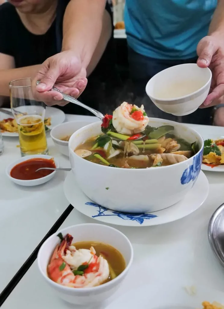 En passe sterk rett med palmehjerter er helt unik. Tom Yam-suppen med sjømat er passe syrlig og sterk. Friterte nudler med sjømat, wokretter med et hav av reker… ja, det er nok å prøve.