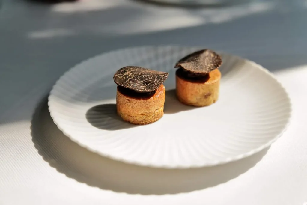 Zwiebelkuchen: løkterte med trøffel. Jeg har en leveregel: Det er aldri feil med trøffel og det skal vise seg å komme mer av dette.