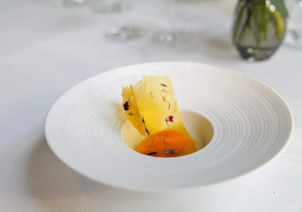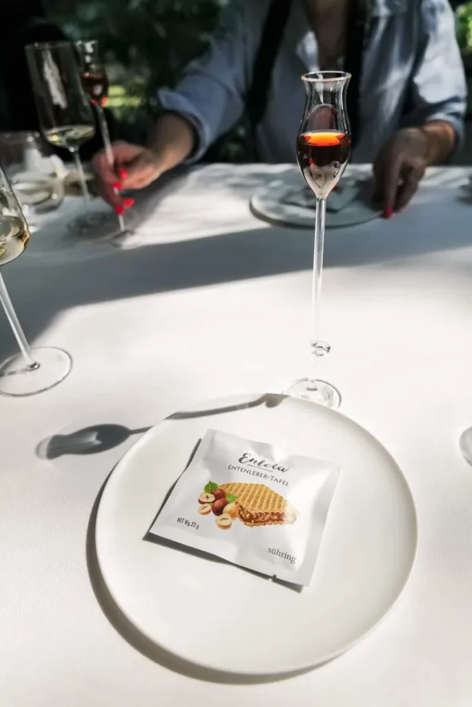 Vinene er tyske og det er litt av et arsenal av dråper. Jeg ramser her opp det vi fikk å spise uten for mange kommenetarer, men konklusjonen min er at dette er fine dining på høyt nivå og perfeksjon til fingerspissene i alle ledd. Det er mange favoritter å velge her, men jeg holder en knapp på den perfekt tilberedte anden med beter. Jeg er selv ganske god til å steke and, men dette er next level. Jeg synes også mengden retter er perfekt for en smaksmeny. Tysk mat er i den tyngre skalaen og porsjonsmessig var dette perfekt.