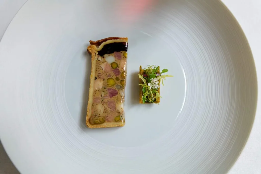 Wildschweinpastete: Paté en croute av villsvin med pistasjer og persillerot. Deilig vinterlig. Man glemmer at man sitter i Thailand i 30 grader når man spiser denne, skal jeg si deg.