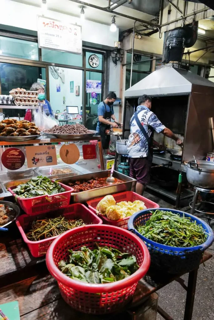 Krua Porn La Mai (ครัวพรละมัย) (Adresse: 590 592 Charoen Krung Rd, Samphanthawong, Bangkok 10100) er en av to avdelinger. Denne er den mest lokale og med minst turister.