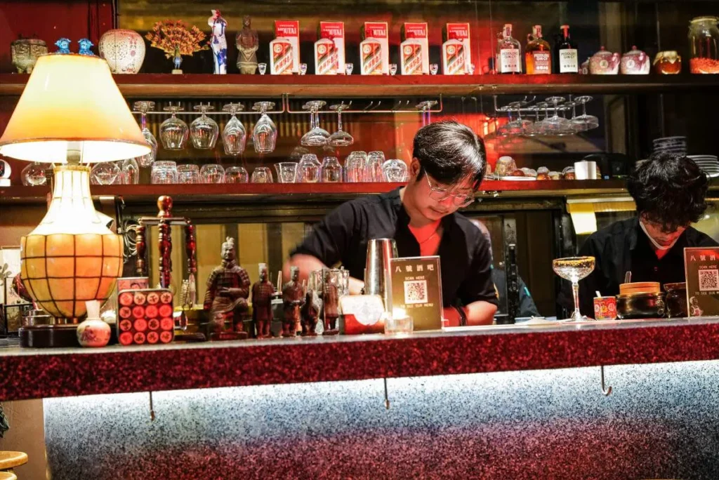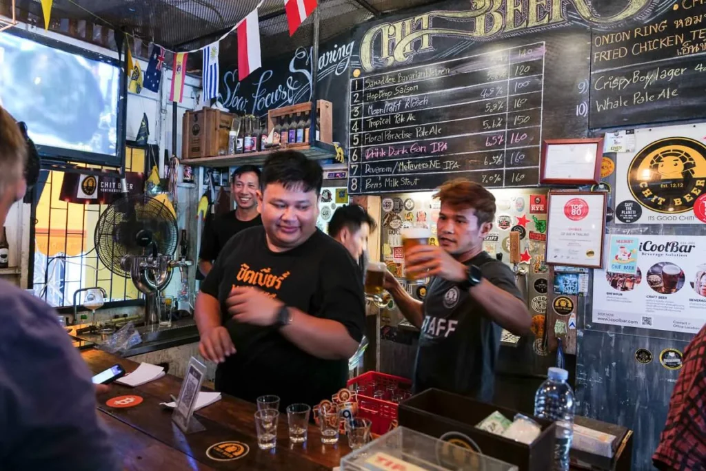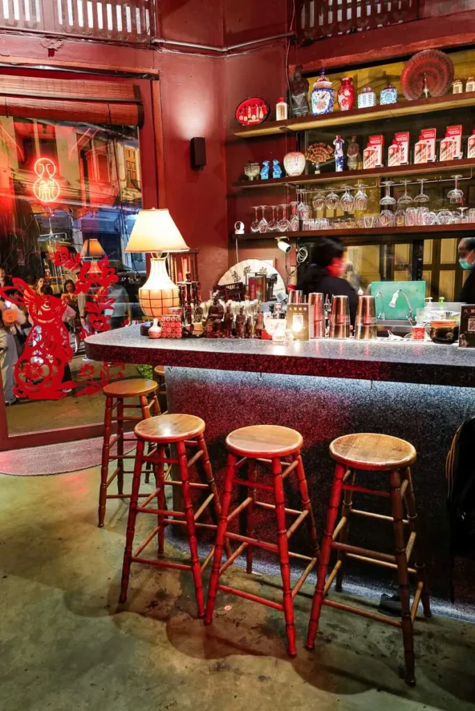 Restaurantene i krysset ligger perfekt til i en av de bedre bargatene i byen. Vi besøker den japanskinpirerte baren Ba hao 八號 (Adresse: 8 ซอย นานา Pom Prap, Pom Prap Sattru Phai, Bangkok 10100). Nydelige drinker. Jeg tester Opium – stedets negroni med vermut, gin, Campari og ginsenglikør. Jeg prøver også Kampai – med Kirin (øl), gin, yuzu, pasjonsfrukt, kumquat og plomme. Velbalanserte cocktails. Jeg har også fått anbefalt Teens of Thailand og TEP BAR (Cultural Bar of Thailand) av gode venner, men det ble ikke tid til å prøve disse denne gangen. Kanskje du prøver dem og melder tilbake til meg hvordan de var? Ja, la oss si det.