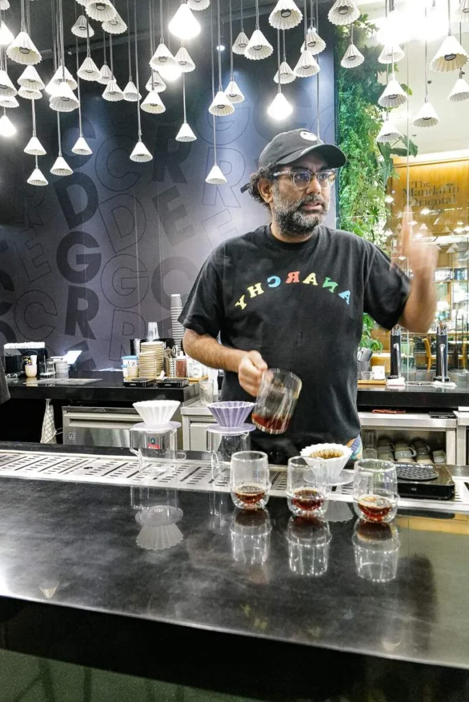 Apropos god drikke. På CDGRE (Adresse: G15, G Floor, Siam Paragon, 991 Rama I Rd, Pathum Wan, Bangkok 10330) i underetasjen på kjøpesenteret Siam Paragon får du kvalitetskaffe signert den indiske kjendiskokken Gaggan Anand og de tyske tvillingbrødrene Matthias og Thomas Sühring (som driver to-stjerners restauranten Sühring i Bangkok. Kommer tilbake til dem) samt streetwear-merket Carnival. Gaggan er kaffenerd og brukte store deler av pandemien til å fordype seg i god kaffe. Når jeg er innom brygger han er helt vilt god etiopisk kaffe med klare blåbærtoner. Han har investert i en helsikes kaffemaskin som må være utviklet av noen i NASA. Han har tre graderinger av den virkelig gode kaffen han selger på CDGRE: «A lot better», «Better than best» og «Extremly rare». Dyrt, men deilig.