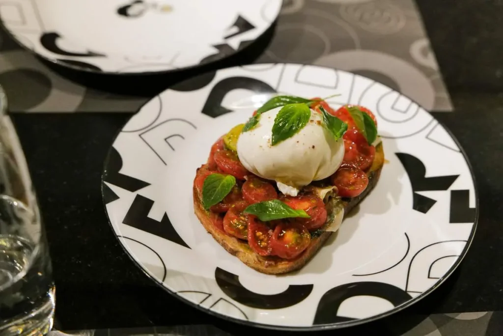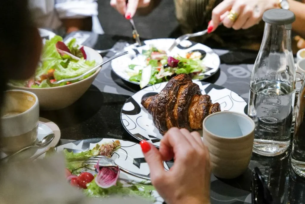 Men det er ikke bare drikken som er verdt å besøke CDGRE for. De har fantastisk merch der. Og man kan ikke få nok merch, mener jeg. Og så til maten. Kanskje de beste croissantene jeg har smakt i mitt liv. Perfekt crunchy, seige inn i og med en glace på toppen som er selve stjernen på verket. Du får deilige sandwicher der. Tomat og burrata eller tykt stykke sideflesk med perfekt eggerøre. Det er bare et par av utvalget. Spennede salater og varmretter som Gaggans kjente krabbecurry-pasta, chicken tikka masala-pasta med parmesan. Totalt koko, alt sammen, men Gud, så godt. De serverer også tvillingbrødrenes helstekte svineknoke.