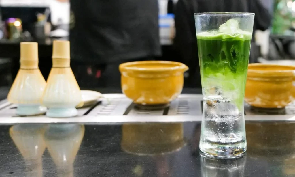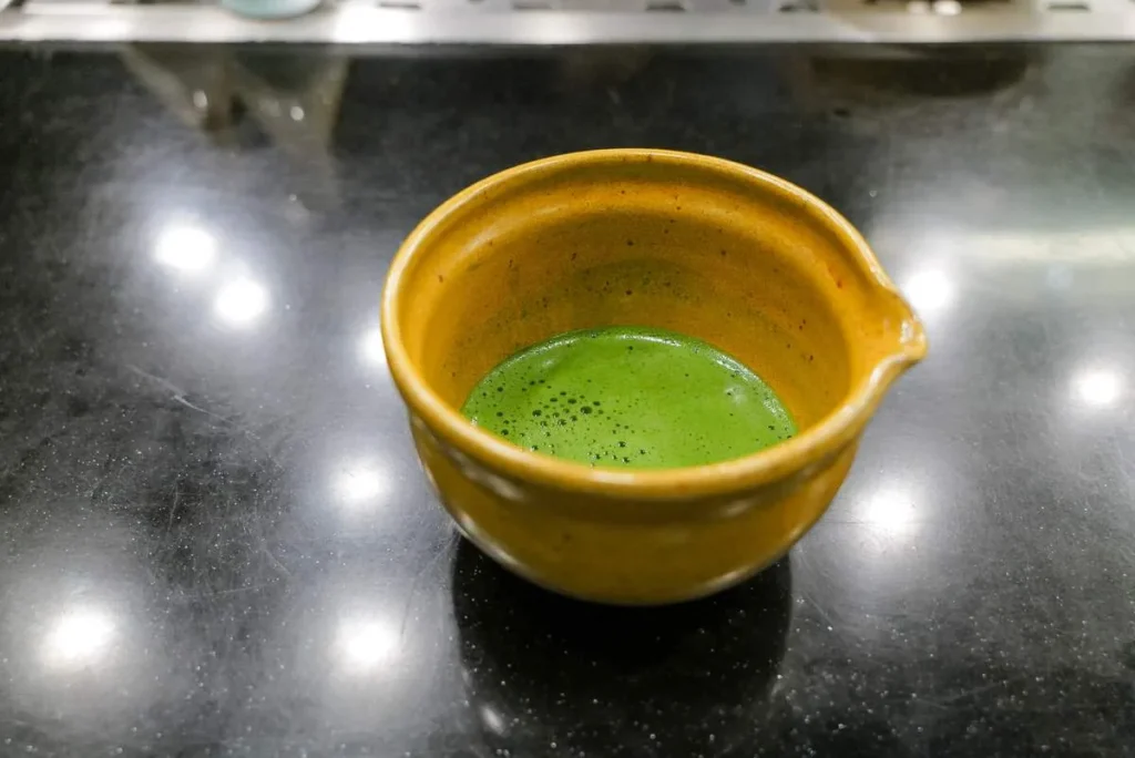 Jeg fikk Gaggan til å lage en Matcha Tonic til meg på den virkelig ekte måten. Først vispet han matchaen på tradisjonelt vis før han helte den over et høyt glass med is og tonic. En sann lykke! Har laget det hjemme etter at jeg kom hjem fra Bangkok.