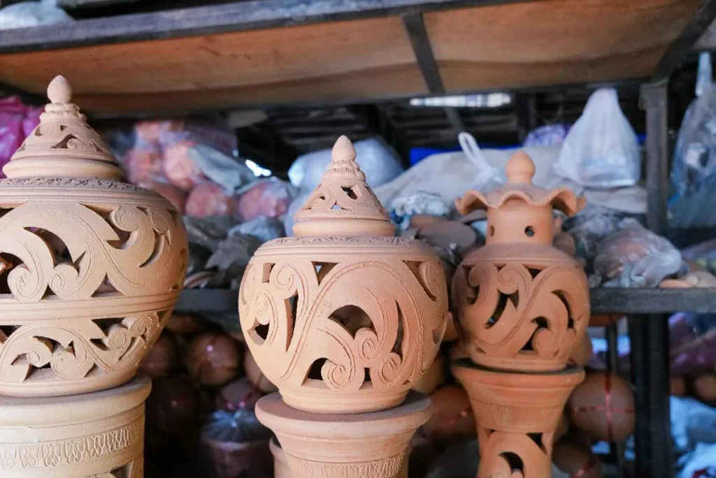 Chef Pam og Chef Ton tok oss med på utflukt på en søndag. Ca 45 min (12 km) ligger nemlig en liten øy som heter Ko Kret midt ute i Chao Phraya-elven. Øya er kjent for terracotta-verksteder og mon-folket (burmeserne) som har bosatt seg her på øya og det er også her du finner helgemarkedet der du kan kjøpe masse søtsaker. Øya kan også friste med kaféer og ikke minst mikrobryggeriet Chit Beer. De har en pub på stylter og knirkete gulv og høy stemning. Har du ikke sett turister på din vandring på øya til nå så er det altså her de finnes. Veldig hyggelig sted da med utsikt utover elven.