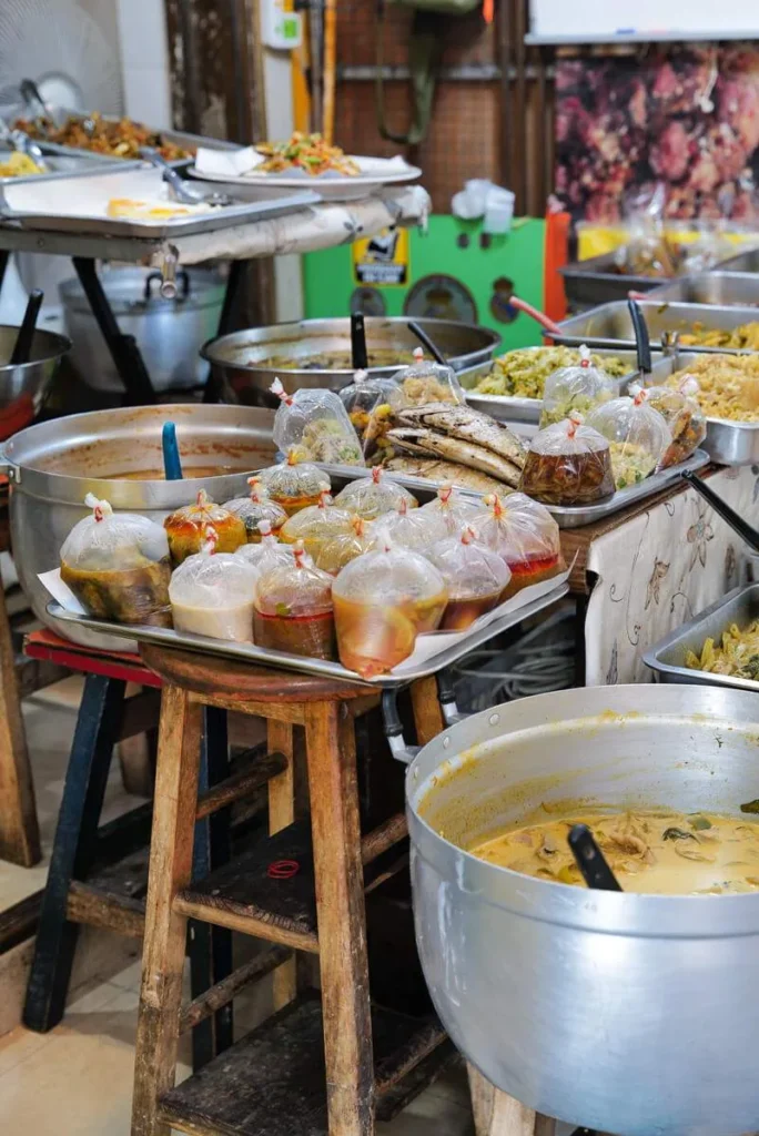 På sørsiden av knutepunktet Saphan Taksin finner du mange steder som spesialiserer seg på Hainanese chicken rice, nasjonalretten i Singapore, men en meget populær rett også i Bangkok.
