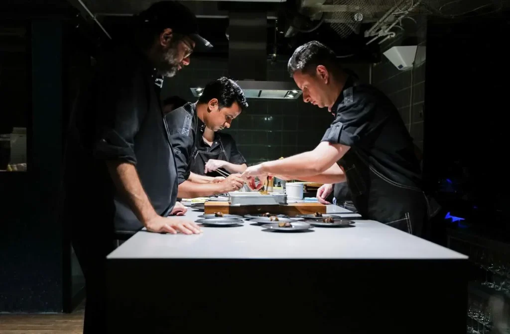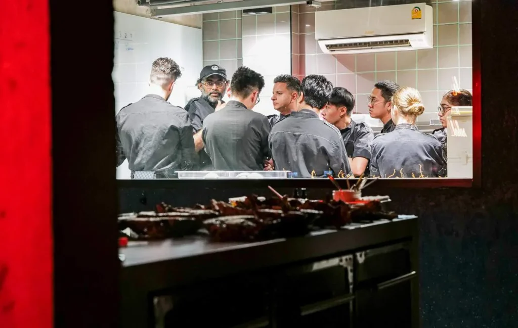 Foo Fighters dundrer ut av høytalerne. Kokkene gjør siste mise en place og spør gjestene om allergier. De forsvinner inn i et opplyst rom med glass og vi ser at Gaggan og hans team har en kjapp peptalk. Til «Another Brick in the Wall» marsjerer kokkene til sine plasser og showet er i gang.