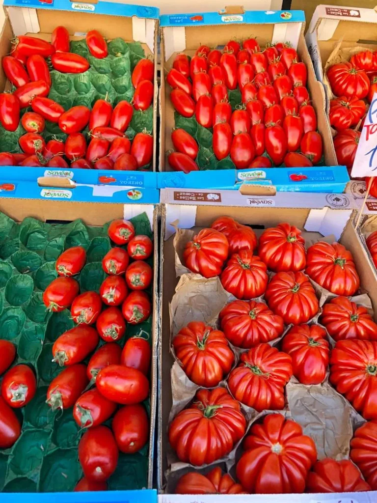 Skjær tomater i forskjellige former og bruk gjerne forskjellige typer.