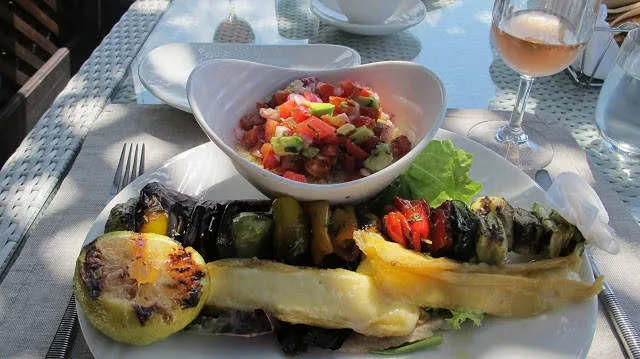 | Jeg fikk servert en fantastisk haloumi-rett på hotel Essque Zalu på Zanzibar sist sommer. Grillet haloumi med grillet sitron og grillede grønnsaker på spyd, sammen en deilig salat og sør-afrikansk rosévin. Det var lunsjen sin, det! |