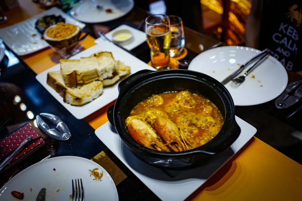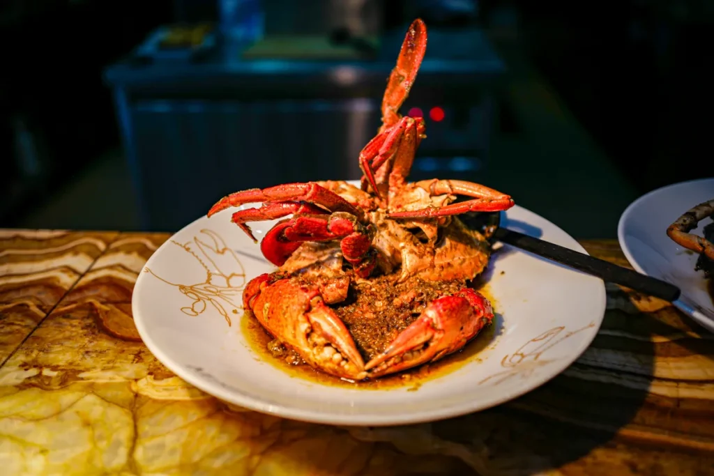 Liker du krabbe like mye som meg, så er dette selve paradiset. Det blir ikke bedre. Krabbene er fanget utenfor kysten av Nord-Sri Lanka. Hver dag blinker lysene på menyen over kjøkkendisken på de størrelsene som er tilgjengelig. Vi snakker krabbe på størrelse med hodeskaller. Jeg har knapt sett maken siden Swahilikysten. Foruten krabbe, som kommer i forskjellige varianter: gratinert, thai-varianter og den kjente pepperkrabbe-presentasjonen, serveres også gigant-reker (prøv Clay Pot Prawn Curry), fisk og en sinnssyk god kylling-curry med speilegg. Til rettene kan du bestille grillet brød og sambal laget av fersk kokosnøtt og chili. Perfekt til et glass iskald øl eller fersk kokosvann rett fra nøtten.